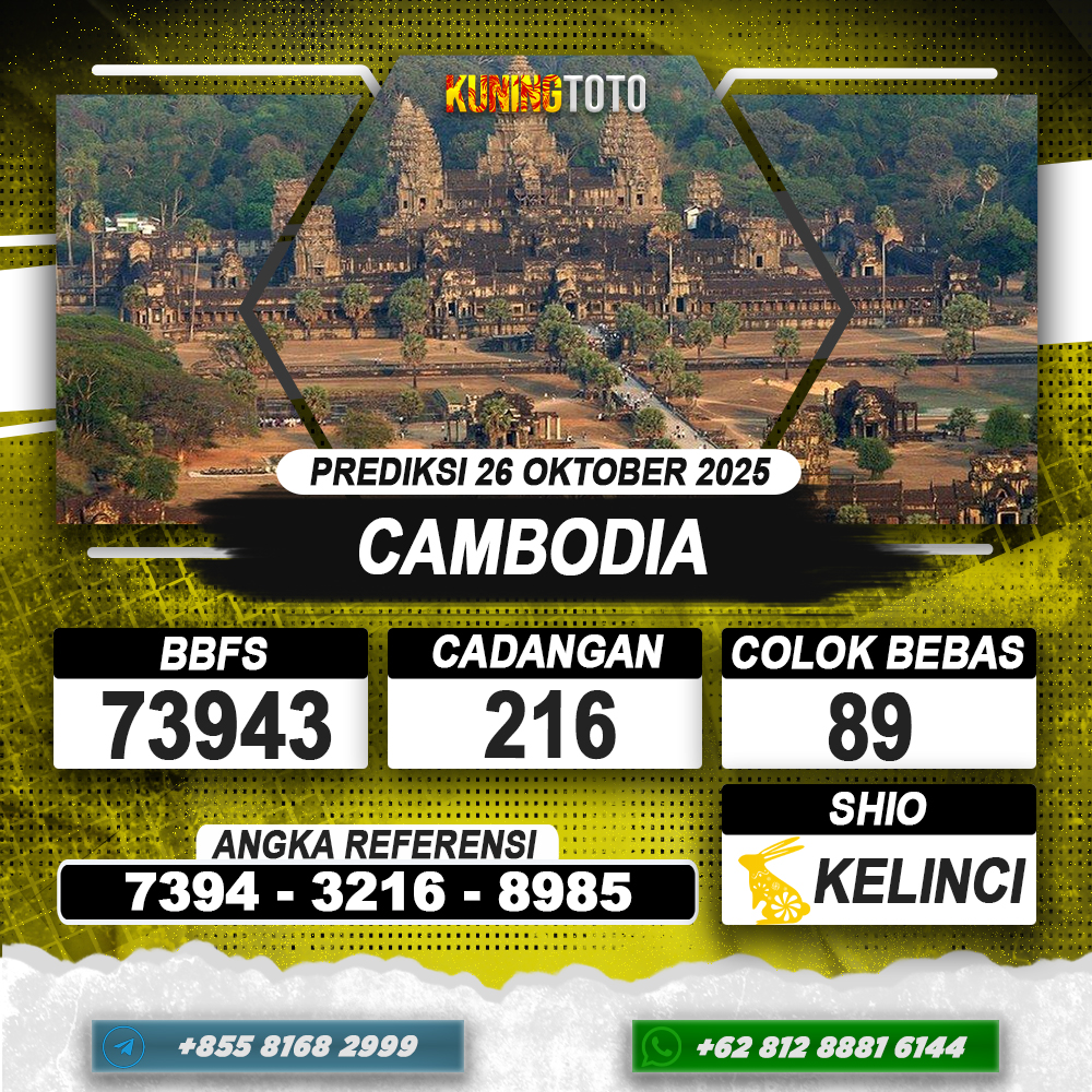 PREDIKSI TOGEL CAMBODIA 12 FEB 2025 – Selamat Datang di Situs Prediksi Togel Online Akurat dan Resmi KUNINGTOTO. Permainan Togel atau Toto Gelap ini telah lama menarik perhatian dan banyak dimainkan oleh para bettor. Sejak dulu permainan togel dimainkan dengan memasang taruhan angka dengan bandar darat yang tersedia di daerah masing – masing. Namun sekarang ini dengan perkembangan teknologi yang semakin maju, para bettor bisa menikmati permainan togel secara online. Anda bisa menemukan banyak6ya Situs Bandar Togel Online yang menyediakan layanan pemaangan angka togel secara praktis. Dimana masing – masing situs bandar togel online resmi dan terpercaya tentu menyediakan layanan dan keuntungan yang berbeda – beda untuk Anda.