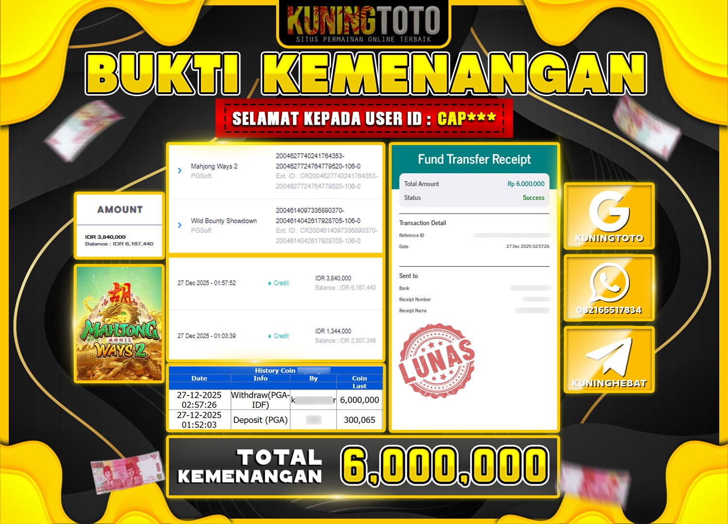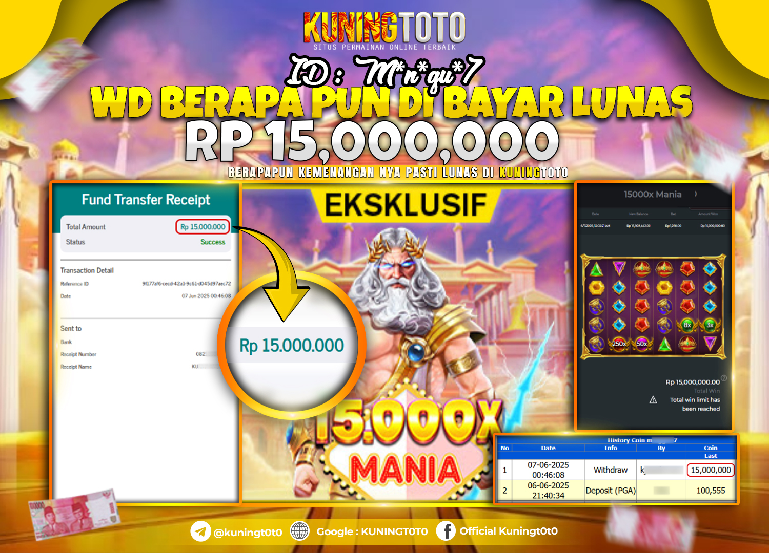 Bukti Kemenangan Slot KuningToto 07 Juni 2025 Slot 15.000x Mania