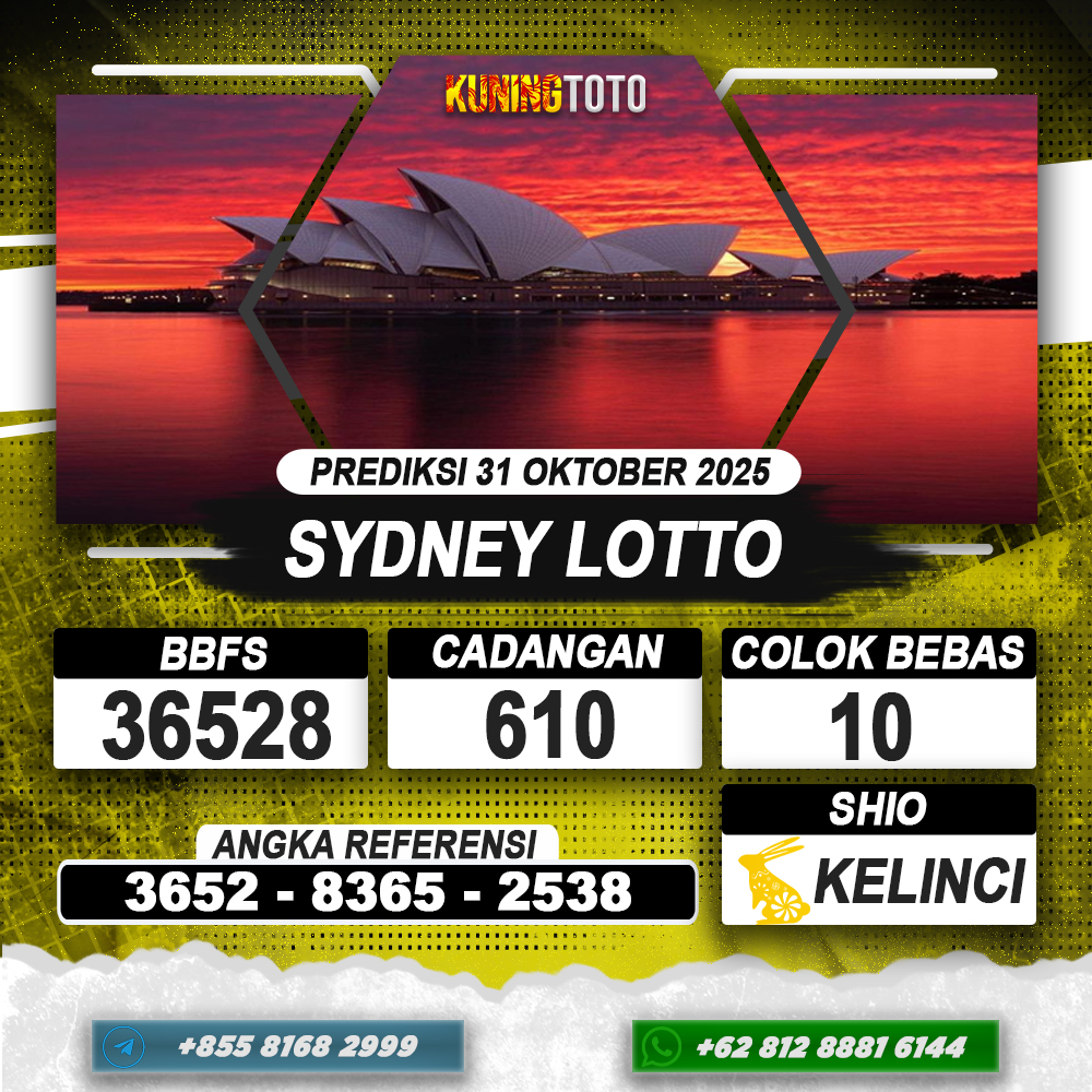 PREDIKSI TOGEL SYDNEY LOTTO 30 OKTOBER 2025 – Selamat Datang di Situs Prediksi Togel Online Akurat dan Resmi KUNINGTOTO. Permainan Togel atau Toto Gelap ini telah lama menarik perhatian dan banyak dimainkan oleh para bettor. Sejak dulu permainan togel dimainkan dengan memasang taruhan angka dengan bandar darat yang tersedia di daerah masing – masing. Namun sekarang ini dengan perkembangan teknologi yang semakin maju, para bettor bisa menikmati permainan togel secara online. Anda bisa menemukan banyak6ya Situs Bandar Togel Online yang menyediakan layanan pemaangan angka togel secara praktis. Dimana masing – masing situs bandar togel online resmi dan terpercaya tentu menyediakan layanan dan keuntungan yang berbeda – beda untuk Anda.