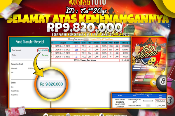 Bukti JackPot Togel Member KUNINGTOTO 15 Oktober 2025 Toto Macau4D Memenangkan Jackpot Permainan Slot online sangat populer di kalangan pemain…