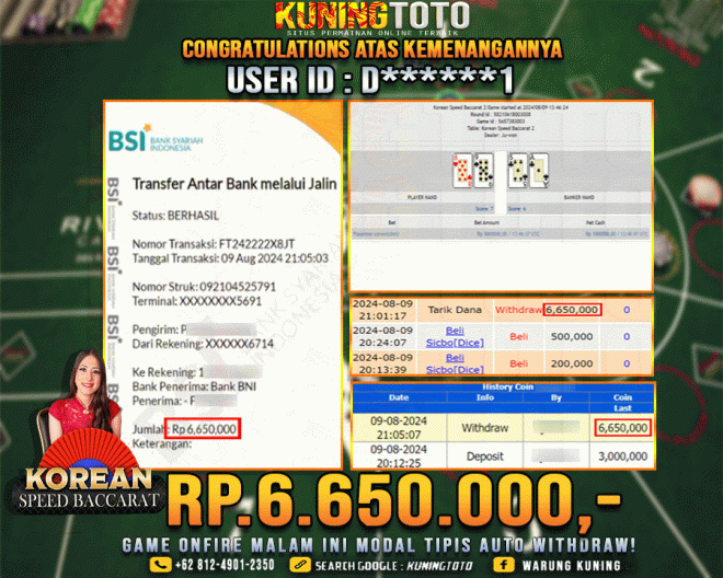 Bukti JP Live Casino Member KUNING TOTO 09 August 2024 Korean Speed Baccarat