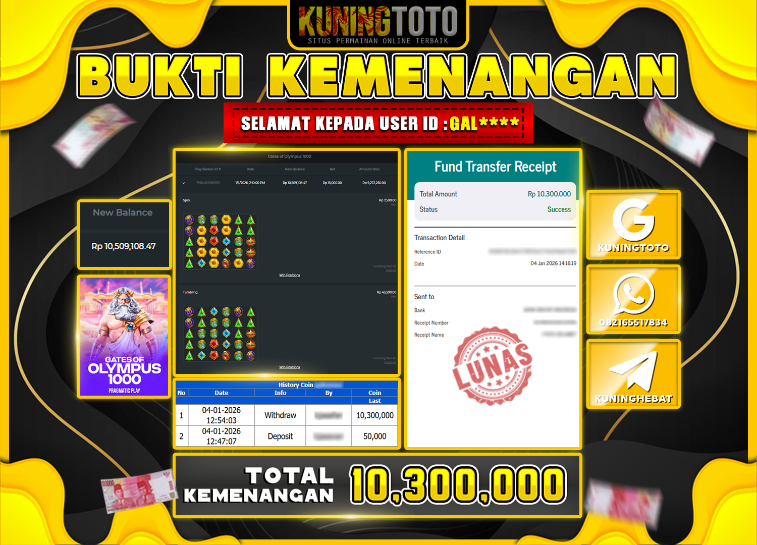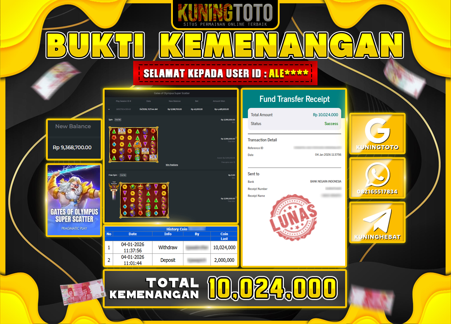 Bukti JP Slot Member KUNING TOTO 02 Januari 2024 Gates Of Olympus