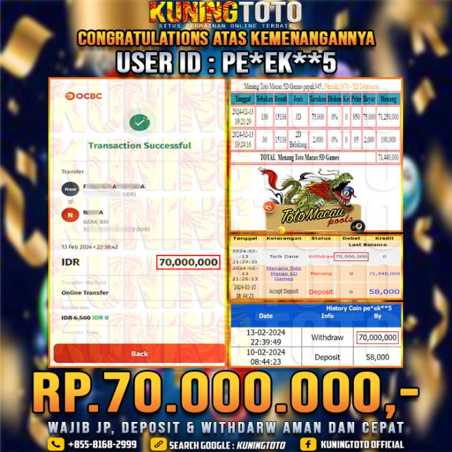 Bukti JP Togel KUNING TOTO 13 Februari 2024 Toto Macau 2D 3D