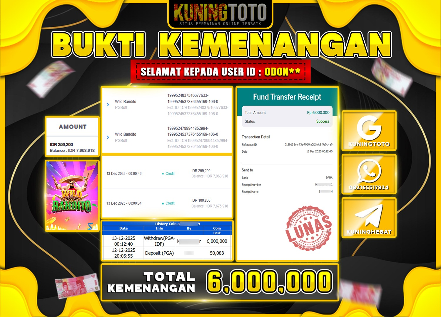 Bukti JackPot Slot Member KUNINGTOTO 13 Desember 2025 Slot Wild Bandito