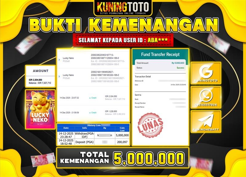 Bukti Kemenangan Slot KuningToto 14 Desember 2025 Slot Lucky Neko