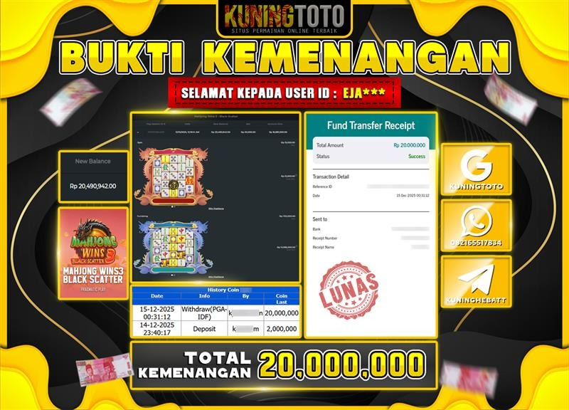 Bukti JackPot Slot Member KUNINGTOTO 15 Desember 2025 Slot Mahjong Wins 3 – Black Scatter