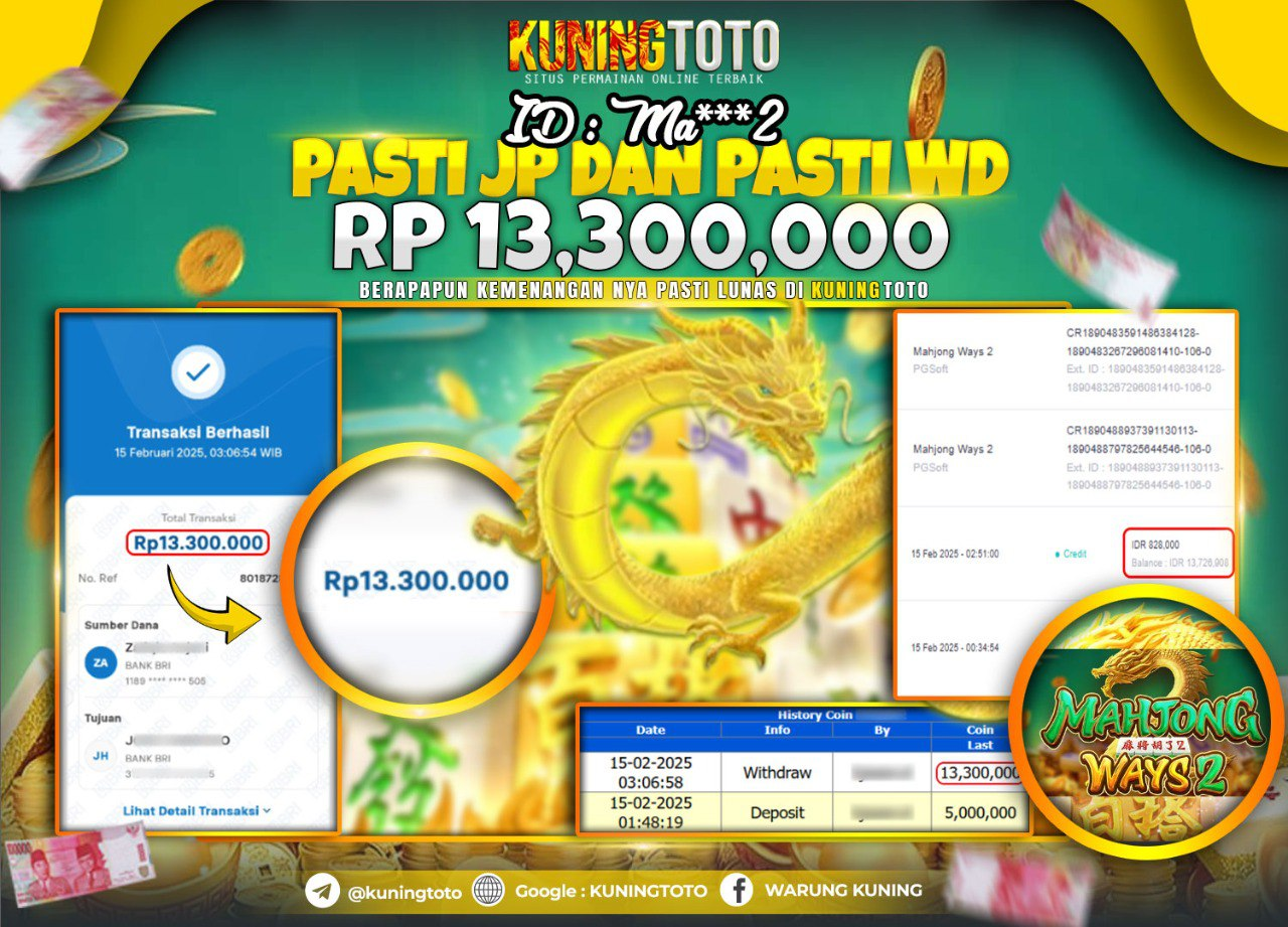 Bukti JackPot Slot Member KUNINGTOTO 15 February 2025 Slot Mahjong Ways 2