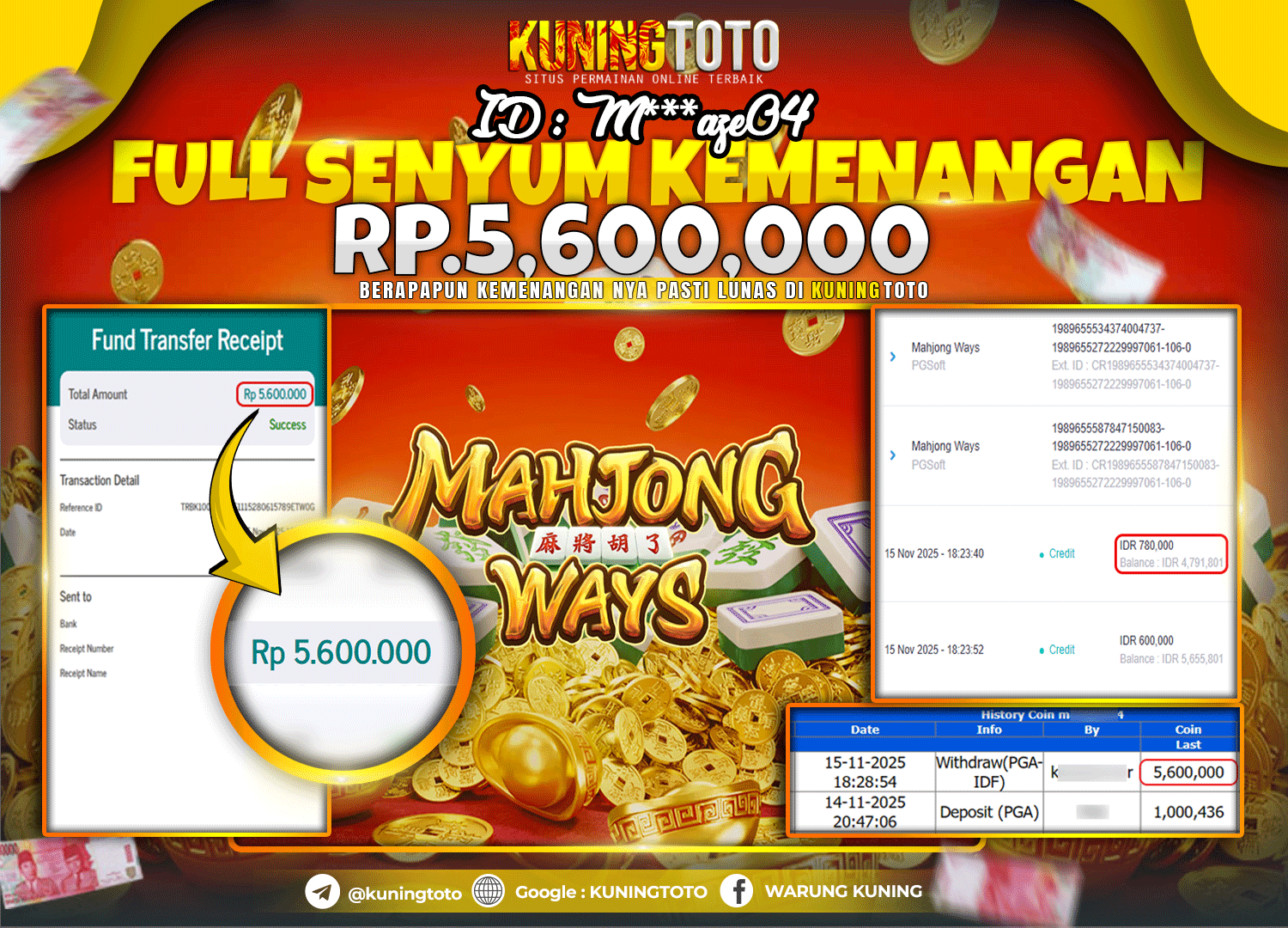 Bukti Kemenangan Slot KuningToto 15 November 2025 Slot Caishen Wins