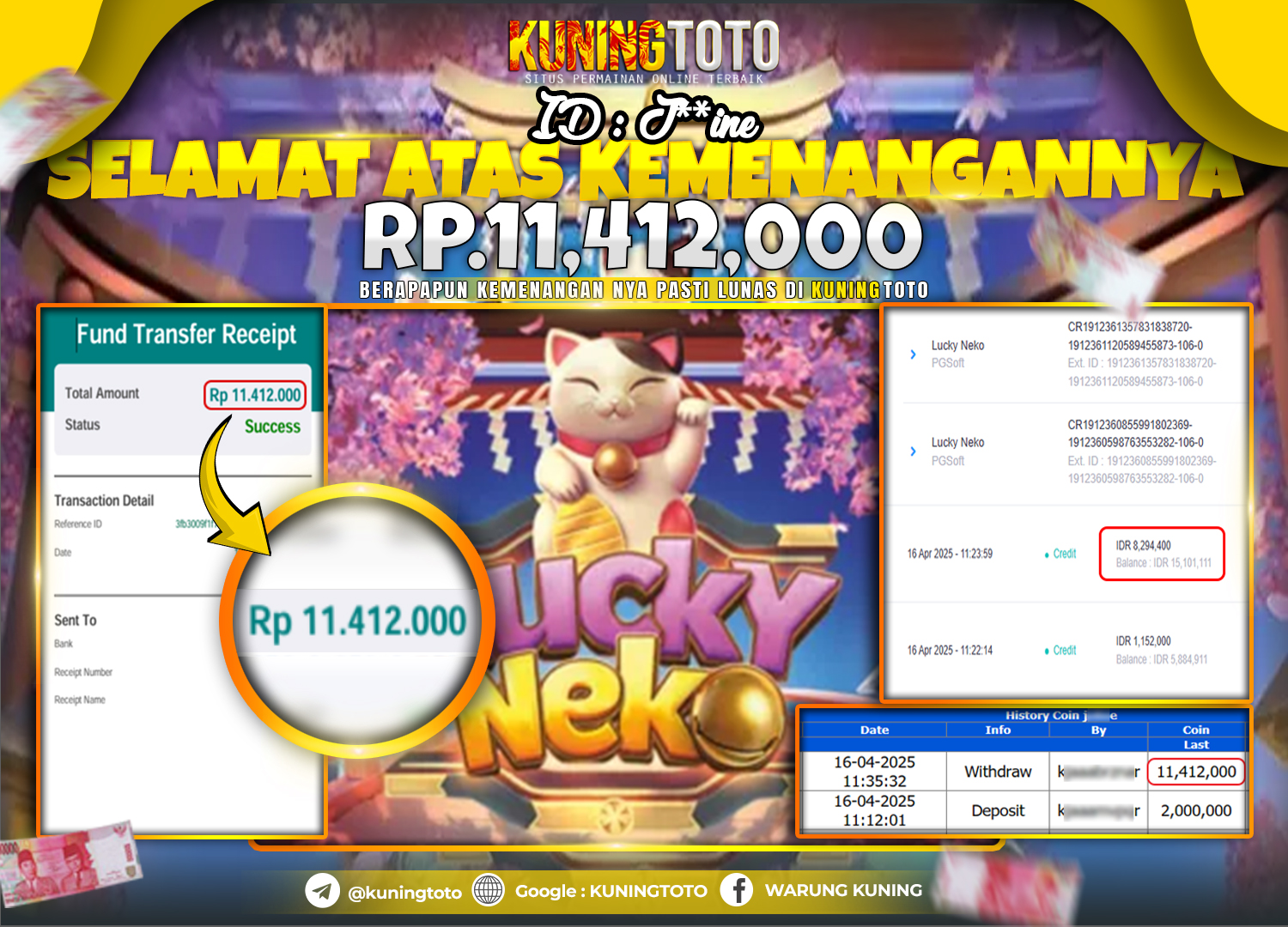 Bukti JackPot Slot Member KUNINGTOTO 16 April 2025 Slot Lucky Neko
