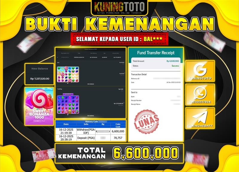 Bukti JackPot Slot Member KUNINGTOTO 16 Desember 2025 Slot Sweet Bonanza 1000