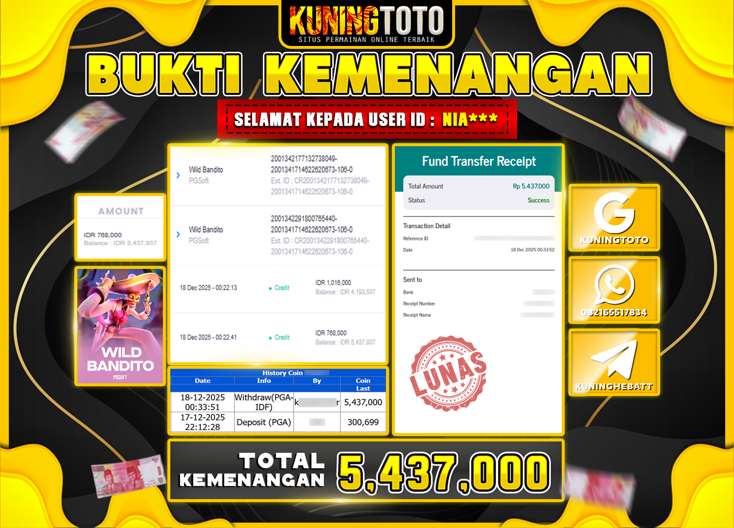 Bukti JackPot Slot Member KUNINGTOTO 18 Desember 2025 Slot Wild Bandito