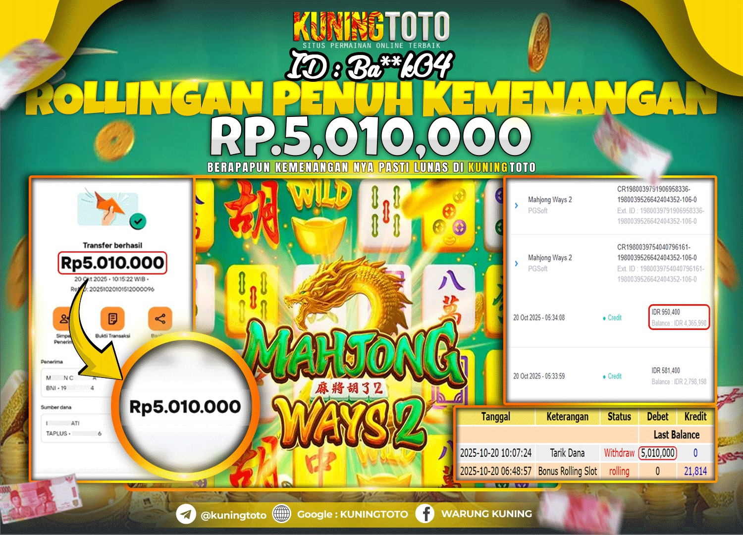 Bukti JackPot Slot Member KUNINGTOTO 18 February 2025 Slot Mahjong Ways 2