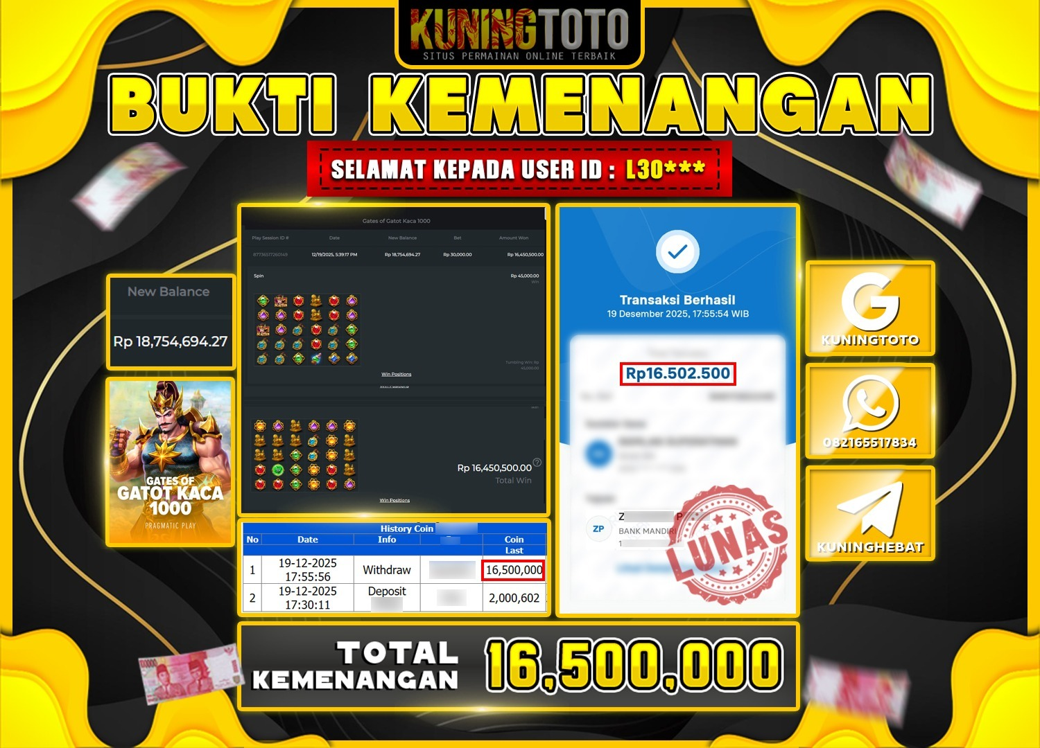 Bukti JackPot Slot Member KUNINGTOTO 19 Desember 2025 Slot GATOT KACA 1000