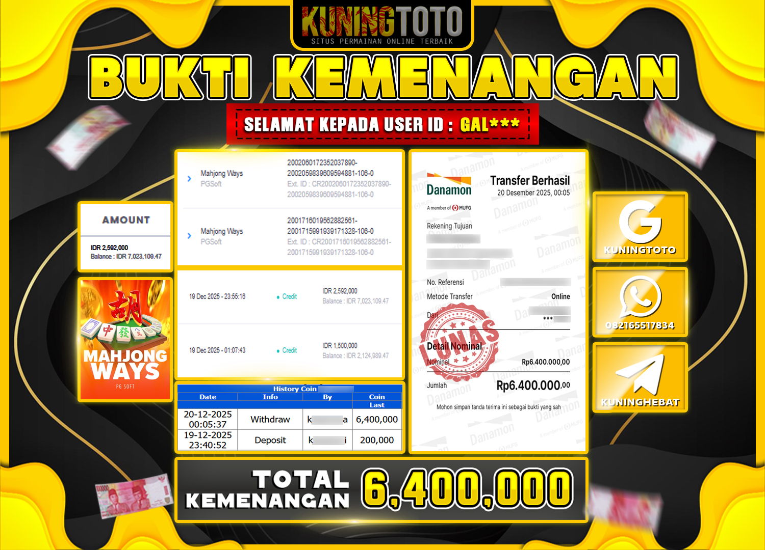 TOTAL WITHDRAW : Rp 6,000,000– (Sudah Dibayar Penuh!)