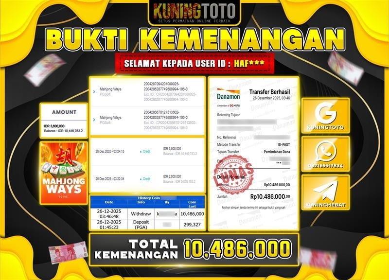 Bukti JackPot Slot Member KUNINGTOTO 26 Juli 2025 Slot Mahjong Ways 2