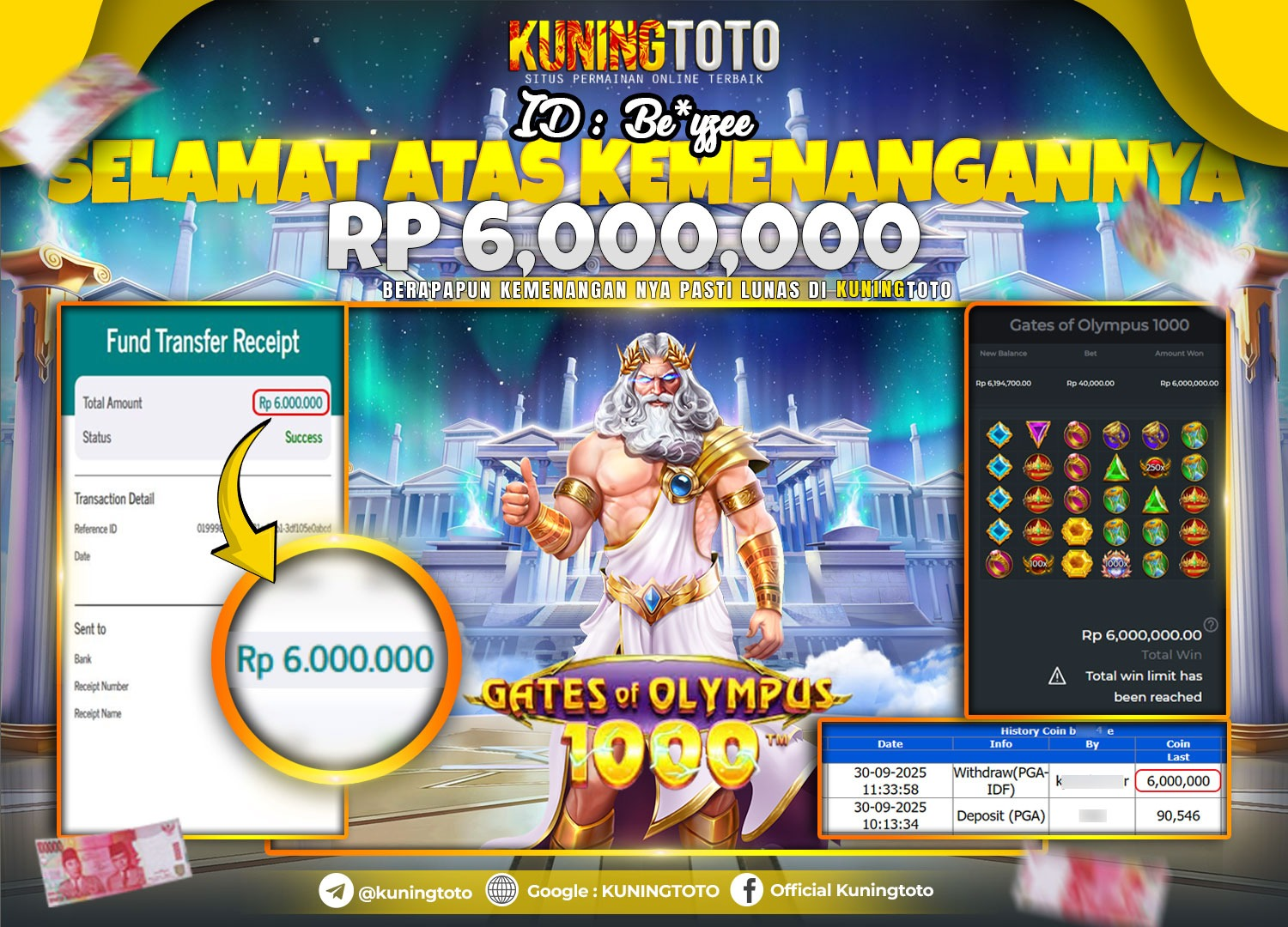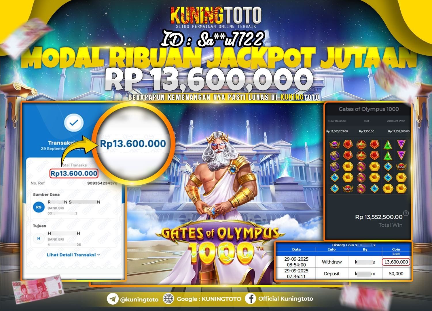 Bukti JackPot Slot Member KUNINGTOTO 29 September 2025 Slot Gates Of Olympus 1000