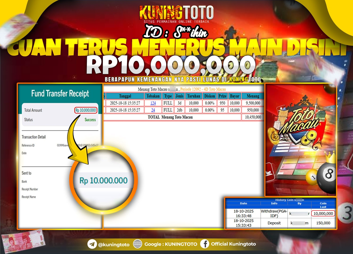 Bukti Kemenangan Togel KuningToto 18 Oktober 2025 Pasaran Toto Macau4D