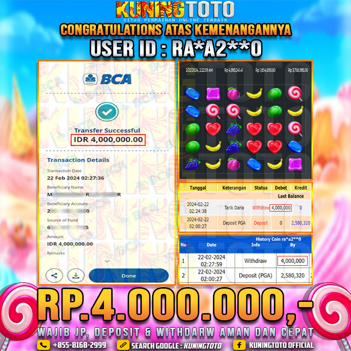 Bukti JP Slot Member KUNING TOTO 22 Febuari 2024 Sweet Bonanza Bukti JP Slot Kuning toto 22 Febuari 2024 Sweet…