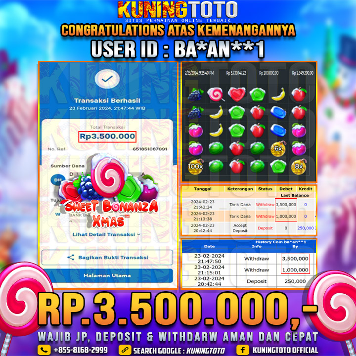 Bukti JP Slot Member KUNING TOTO 23 Febuari 2024 Sweet Bonanza Xmas Bukti JP Slot Kuning toto 24 Febuari 2024…