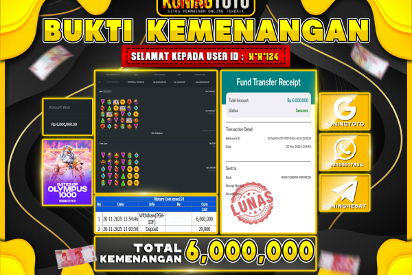 Bukti JackPot Slot Member KUNINGTOTO 20 November 2025 Gates Of Olympus Memenangkan Jackpot Permainan Slot online sangat populer di kalangan…