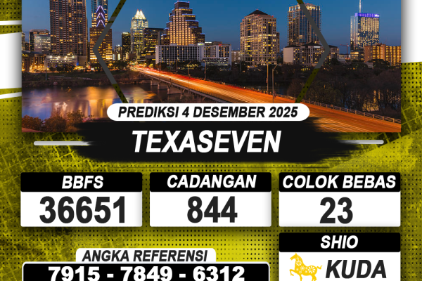 PREDIKSI TOGEL TEXASEVEN 04 DESEMBER 2025 – Selamat Datang di Situs Prediksi Togel Online Akurat dan Resmi KUNINGTOTO. Permainan Togel atau Toto…