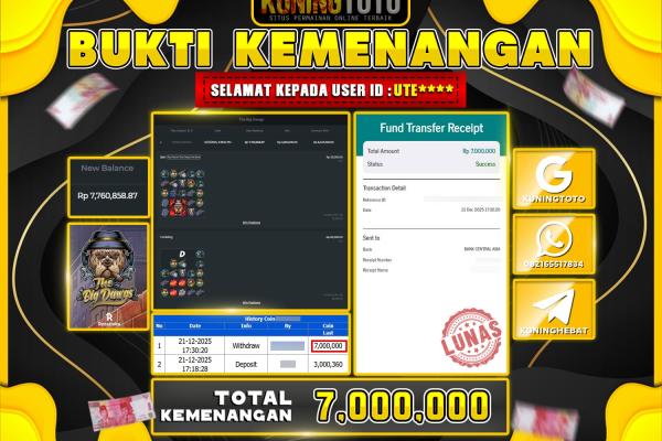Bukti JackPot Slot Member KUNINGTOTO 21 Desember 2025 Slot The Big Dawgs Memenangkan Jackpot Permainan Slot online sangat populer di…
