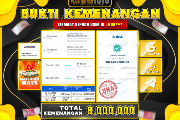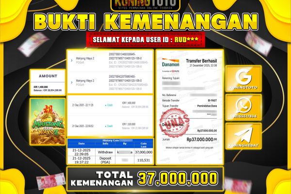 Bukti JackPot Slot Member KUNINGTOTO 21 Desember 2025 Slot Mahjong Ways Memenangkan Jackpot Permainan Slot online sangat populer di kalangan…