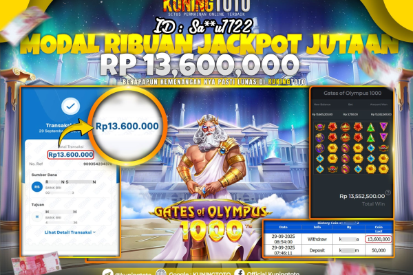 Bukti JackPot Slot Member KUNINGTOTO 29 September 2025 Slot Gates Of Olympus 1000 Memenangkan Jackpot Permainan Slot online sangat populer…