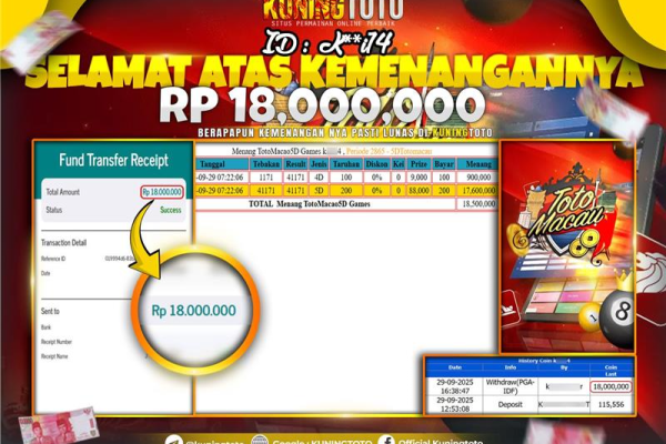 Bukti JackPot Togel Member KUNINGTOTO 29 September 2025 Pasaran Toto Macau 5D Memenangkan Jackpot Permainan Slot online sangat populer di…