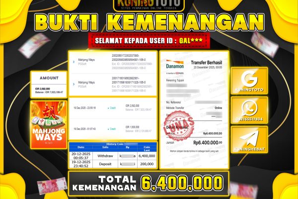 Bukti JackPot Slot Member KUNINGTOTO 20 Desember 2025 Slot Mahjong Ways Memenangkan Jackpot Permainan Slot online sangat populer di kalangan…