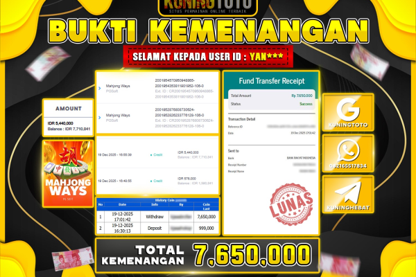 Bukti JackPot Slot Member KUNINGTOTO 19 Desember 2025 Slot Mahjong Ways Memenangkan Jackpot Permainan Slot online sangat populer di kalangan…