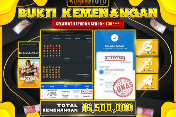 Bukti JackPot Slot Member KUNINGTOTO 19 Desember 2025 Slot GATOT KACA 1000 Memenangkan Jackpot Permainan Slot online sangat populer di…