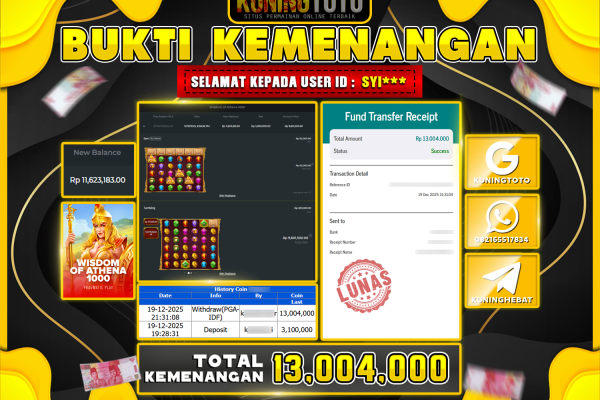 Bukti JackPot Slot Member KUNINGTOTO 19 Desember 2025 Slot Wisdom Of Athena 1000 Memenangkan Jackpot Permainan Slot online sangat populer…