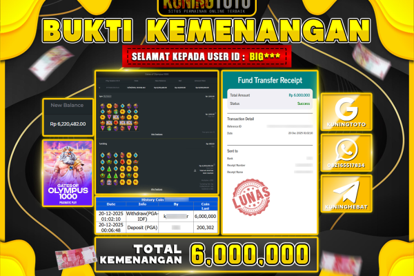 Bukti JackPot Slot Member KUNINGTOTO 20 Desember 2025 Slot Gates Of Olympus 1000 Memenangkan Jackpot Permainan Slot online sangat populer…