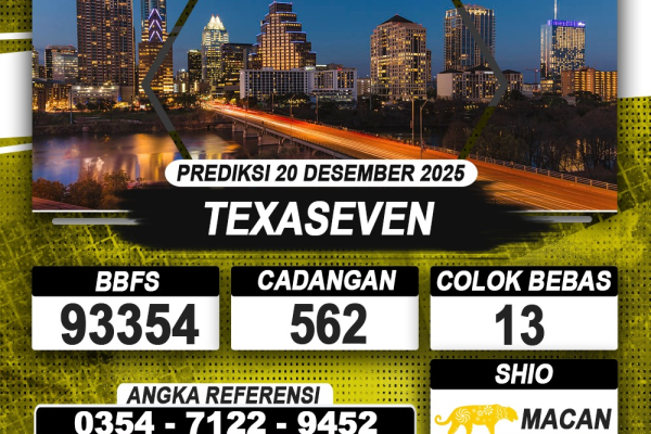 PREDIKSI TOGEL TEXASEVEN 20 DESEMBER 2025 – Selamat Datang di Situs Prediksi Togel Online Akurat dan Resmi KUNINGTOTO. Permainan Togel atau Toto…