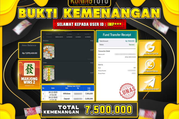 Bukti JackPot Slot Member KUNINGTOTO 18 Desember 2025 Slot Mahjong Wins 2 Memenangkan Jackpot Permainan Slot online sangat populer di…