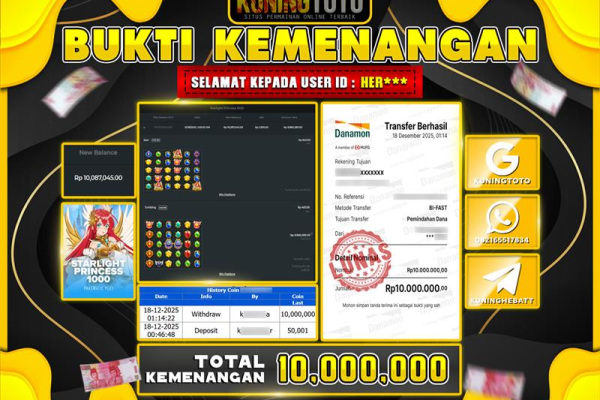 Bukti JackPot Slot Member KUNINGTOTO 18 Desember 2025 Slot Starlight Princess 1000 Memenangkan Jackpot Permainan Slot online sangat populer di…