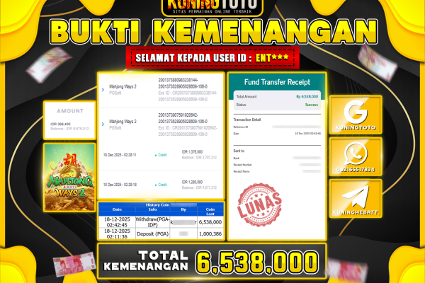 Bukti JackPot Slot Member KUNINGTOTO 18 Desember 2025 Slot Mahjong Ways 2 Memenangkan Jackpot Permainan Slot online sangat populer di…