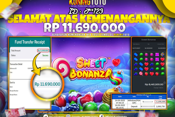Bukti JackPot Slot Member KUNINGTOTO 24 September 2025 Slot Sweet Bonanza Memenangkan Jackpot Permainan Slot online sangat populer di kalangan…