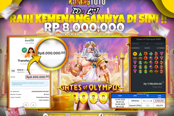 Bukti JackPot Slot Member KUNINGTOTO 24 September 2025 Slot Gates Of Olympus 1000 Memenangkan Jackpot Permainan Slot online sangat populer…