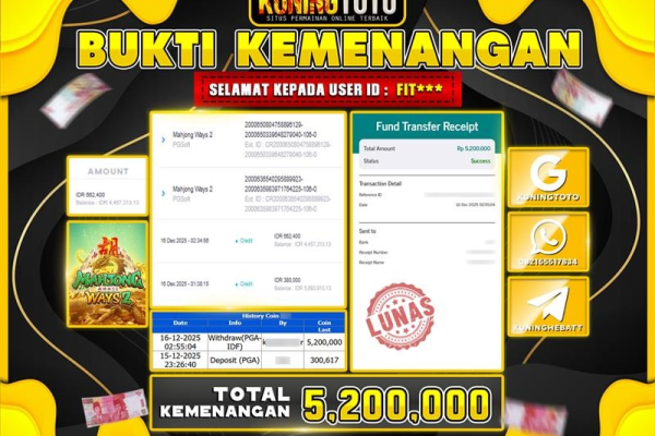 Bukti JackPot Slot Member KUNINGTOTO 16 Desember 2025 Slot Mahjong Ways 2 Memenangkan Jackpot Permainan Slot online sangat populer di…