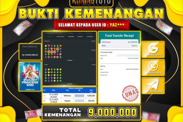 Bukti JackPot Slot Member KUNINGTOTO 15 Desember 2025 Slot Starlight Princess 1000 Memenangkan Jackpot Permainan Slot online sangat populer di…