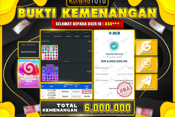 Bukti JackpoT Slot Member KUNINGTOTO 13 DESEMBER 2025 Sweet Bonanza 1000 Memenangkan Jackpot Permainan Slot online sangat populer di kalangan…