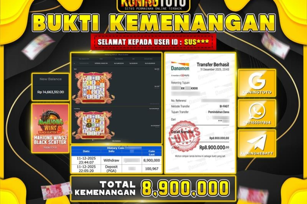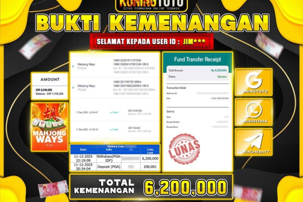 Bukti JackPot Slot Member KUNINGTOTO 11 Desember 2025 Slot Mahjong Ways Memenangkan Jackpot Permainan Slot online sangat populer di kalangan…