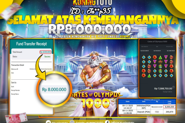 Bukti JackPot Slot Member KUNINGTOTO 08 November 2025 Slot Gates Of Olympus 1000 Memenangkan Jackpot Permainan Slot online sangat populer…