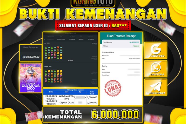 Bukti JackPot Slot Member KUNINGTOTO 24 Desember 2025 Gates Of Olympus 1000 Memenangkan Jackpot Permainan Slot online sangat populer di…