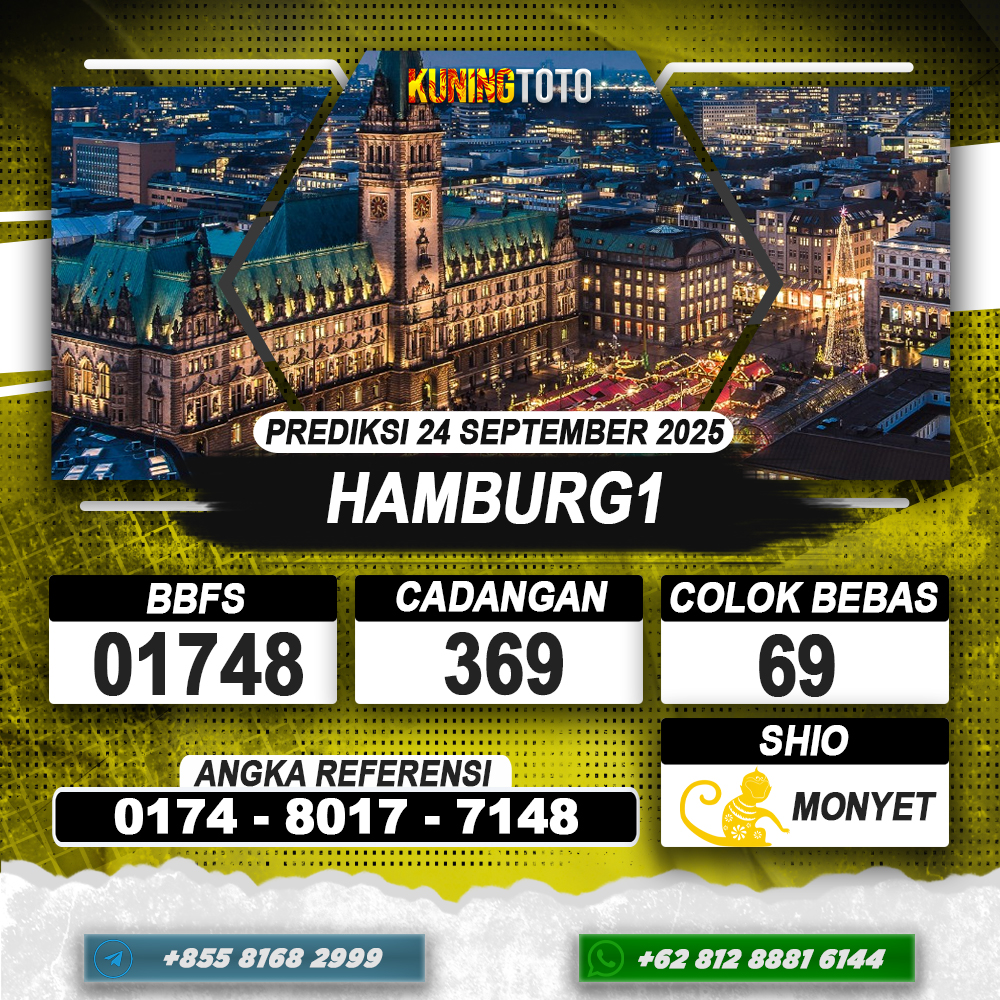 PREDIKSI TOGEL HAMBURG1 24 SEPTEMBER 2025 – Selamat Datang di Situs Prediksi Togel Online Akurat dan Resmi KUNINGTOTO. Permainan Togel atau Toto Gelap ini telah lama menarik perhatian dan banyak dimainkan oleh para bettor. Sejak dulu permainan togel dimainkan dengan memasang taruhan angka dengan bandar darat yang tersedia di daerah masing – masing. Namun sekarang ini dengan perkembangan teknologi yang semakin maju, para bettor bisa menikmati permainan togel secara online. Anda bisa menemukan banyak6ya Situs Bandar Togel Online yang menyediakan layanan pemaangan angka togel secara praktis. Dimana masing – masing situs bandar togel online resmi dan terpercaya tentu menyediakan layanan dan keuntungan yang berbeda – beda untuk Anda.