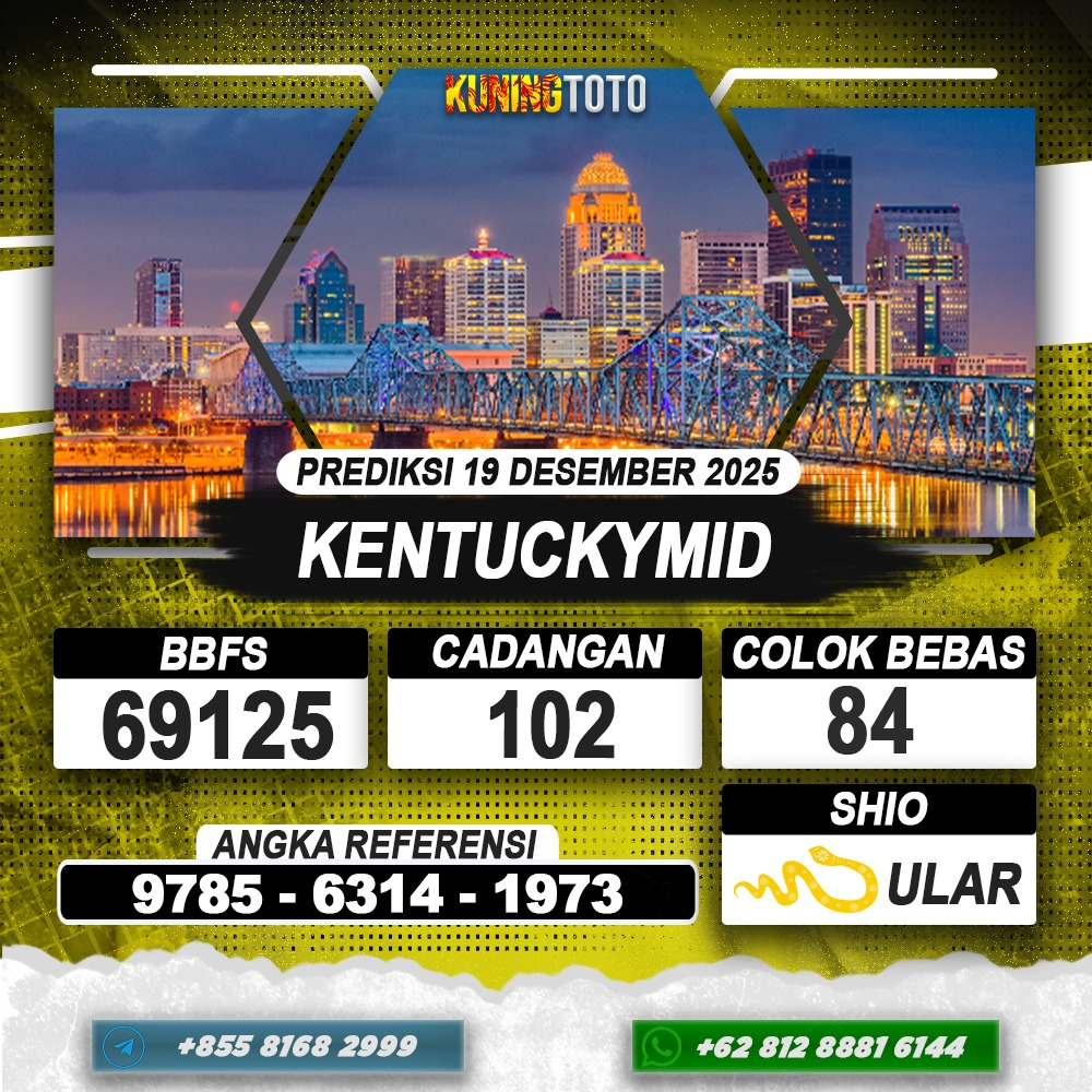 PREDIKSI TOGEL KENTUCKYMID 19 DESEMBER 2025 – Selamat Datang di Situs Prediksi Togel Online Akurat dan Resmi KUNINGTOTO. Permainan Togel atau Toto Gelap ini telah lama menarik perhatian dan banyak dimainkan oleh para bettor. Sejak dulu permainan togel dimainkan dengan memasang taruhan angka dengan bandar darat yang tersedia di daerah masing – masing. Namun sekarang ini dengan perkembangan teknologi yang semakin maju, para bettor bisa menikmati permainan togel secara online. Anda bisa menemukan banyak6ya Situs Bandar Togel Online yang menyediakan layanan pemaangan angka togel secara praktis. Dimana masing – masing situs bandar togel online resmi dan terpercaya tentu menyediakan layanan dan keuntungan yang berbeda – beda untuk Anda.