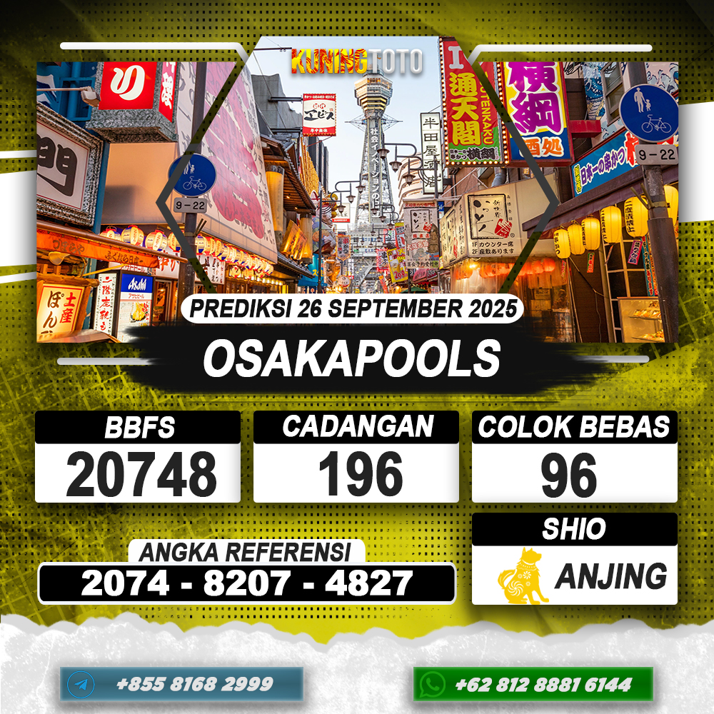 PREDIKSI TOGEL OSAKAPOOLS 26 SEPTEMBER 2025 – Selamat Datang di Situs Prediksi Togel Online Akurat dan Resmi KUNINGTOTO. Permainan Togel atau Toto Gelap ini telah lama menarik perhatian dan banyak dimainkan oleh para bettor. Sejak dulu permainan togel dimainkan dengan memasang taruhan angka dengan bandar darat yang tersedia di daerah masing – masing. Namun sekarang ini dengan perkembangan teknologi yang semakin maju, para bettor bisa menikmati permainan togel secara online. Anda bisa menemukan banyak6ya Situs Bandar Togel Online yang menyediakan layanan pemaangan angka togel secara praktis. Dimana masing – masing situs bandar togel online resmi dan terpercaya tentu menyediakan layanan dan keuntungan yang berbeda – beda untuk Anda.