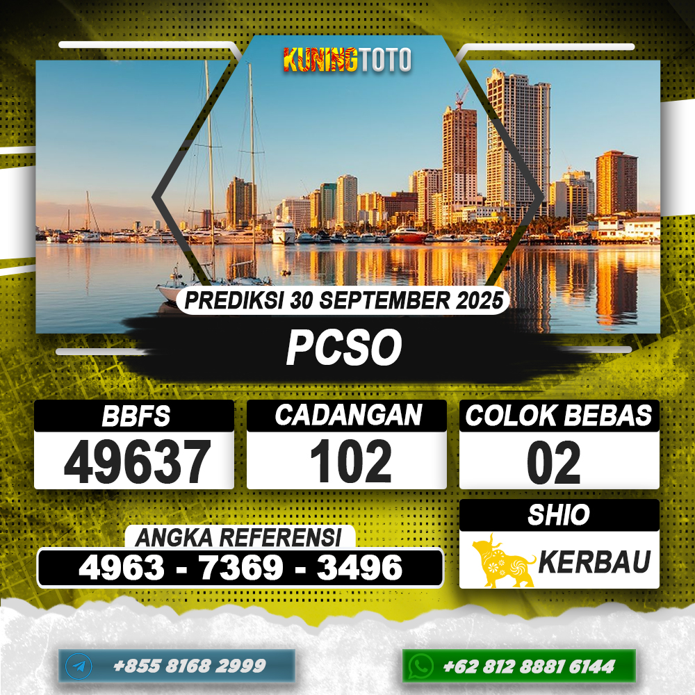 PREDIKSI TOGEL PCSO 30 SEPTEMBER 2025 – Selamat Datang di Situs Prediksi Togel Online Akurat dan Resmi KUNINGTOTO. Permainan Togel atau Toto Gelap ini telah lama menarik perhatian dan banyak dimainkan oleh para bettor. Sejak dulu permainan togel dimainkan dengan memasang taruhan angka dengan bandar darat yang tersedia di daerah masing – masing. Namun sekarang ini dengan perkembangan teknologi yang semakin maju, para bettor bisa menikmati permainan togel secara online. Anda bisa menemukan banyak6ya Situs Bandar Togel Online yang menyediakan layanan pemaangan angka togel secara praktis. Dimana masing – masing situs bandar togel online resmi dan terpercaya tentu menyediakan layanan dan keuntungan yang berbeda – beda untuk Anda